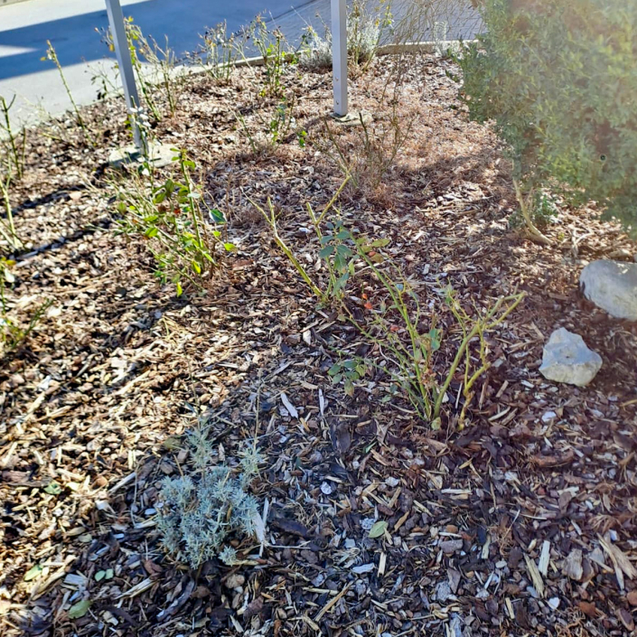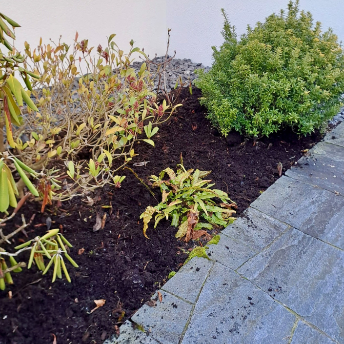 Holzschnitzel hemmt das Wachstum von Unkraut deutlich. Weniger Jäten, weniger Pflegeaufwand.